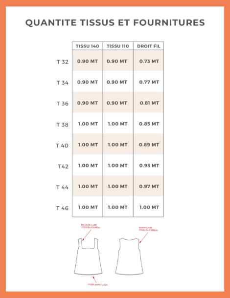 VALEUR COUTURE : les valeurs de couture d'1cm sont comprises comme tous nos patrons (sauf indications contraires).