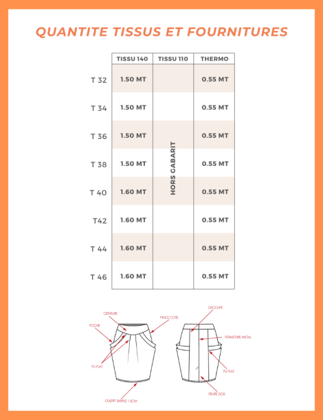 VALEUR COUTURE : les valeurs de couture d'1cm sont comprises comme tous nos patrons (sauf indications contraires).