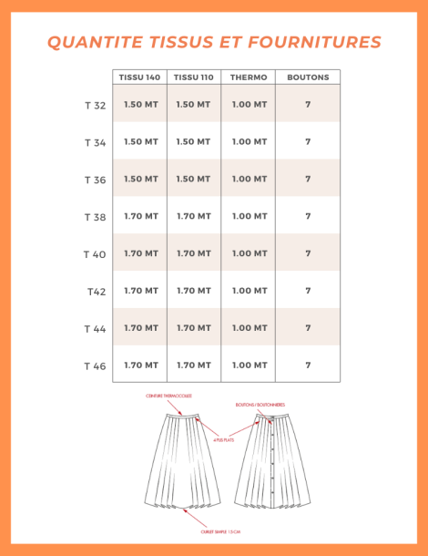 VALEUR COUTURE : Les valeurs de couture de 1 cm sont comprises comme tous nos patrons (sauf indication contraire).
